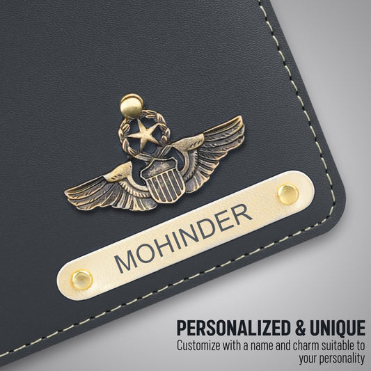 Grey Personalized Leather Wallet & Keychain Gift Set